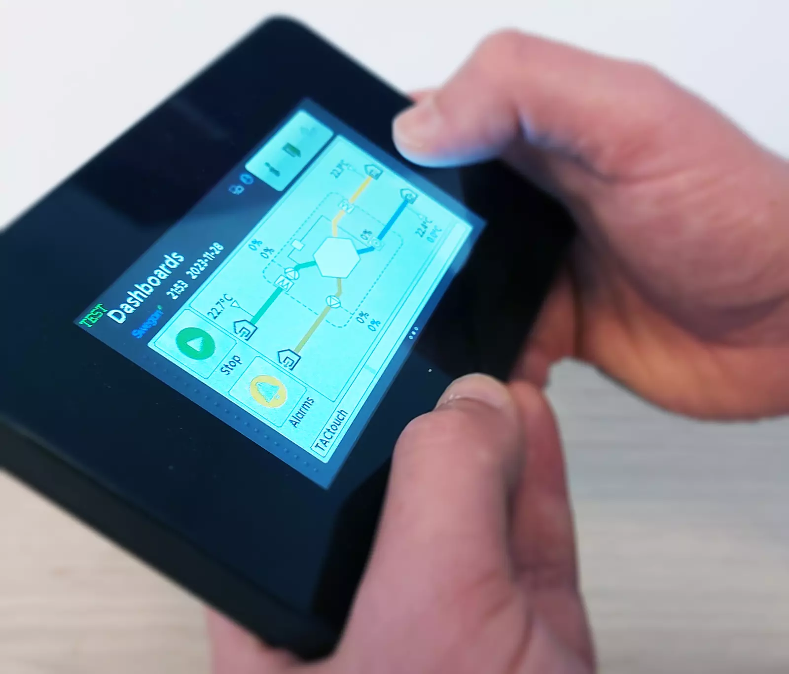 The integrated TAC control system enables configuration and control of the unit using the TACtouch HMI, which is a 4.3"" touchscreen with an intuitive user interface. The TAC control box can also be connected to the BMS using various communication protocols: MODBUS RTU, MODBUS WIFI, MODBUS TCP/IP, BACnet, KNX and IO.