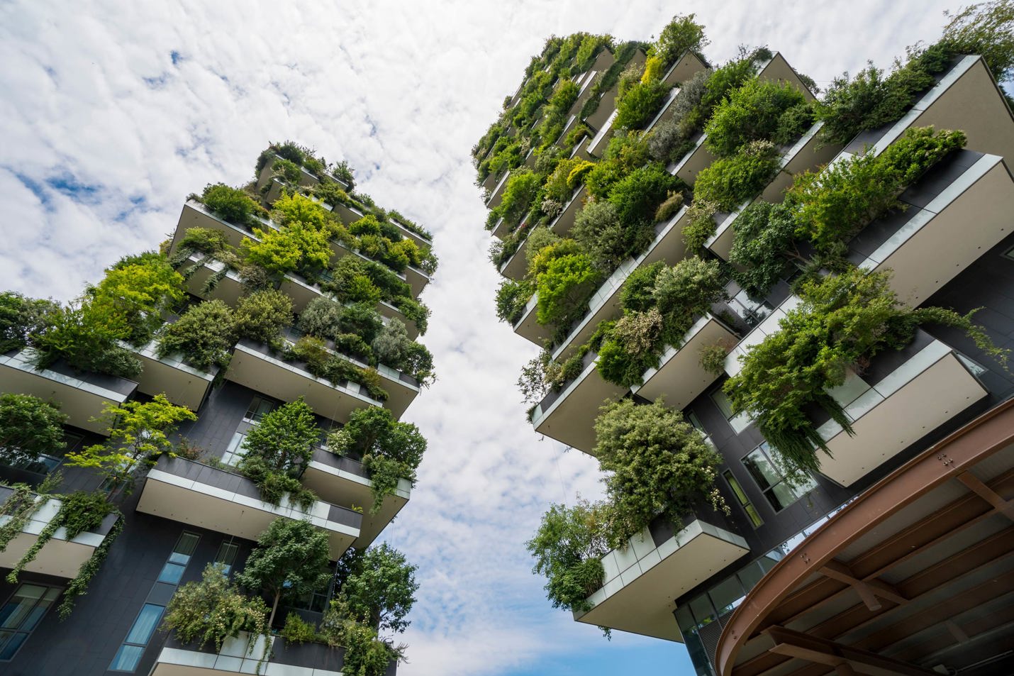 - Incorporation of nature, such as living walls, tree-covered residential towers, and green roofs to help cool existing buildings and create healthy biophilic environments for humans.